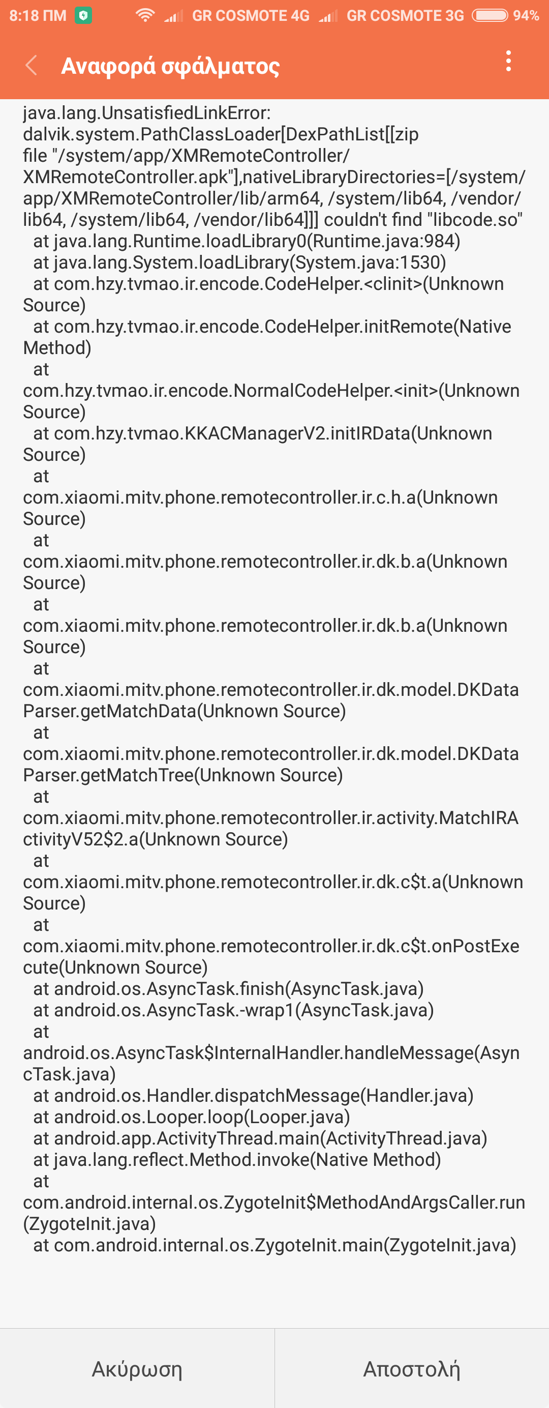 έχω και σφάλμα στο τηλεχειστηριο όταν ανοίγω την εφαρμογή