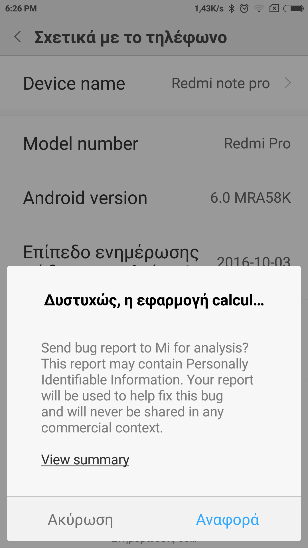 Το κινητό έχει πάνω το android6.0 ΜΡΑ58Κ (έτσι γράφει, δεν ξέρω περισσότερα..) και φυσικά τα ελληνικά του είναι χάλια (δεν έχει πλήρη ελληνικά).