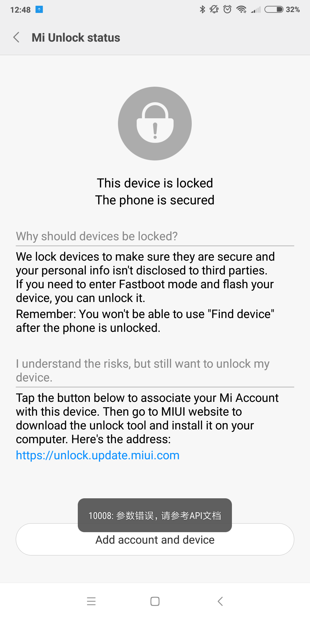 Πήγα στο Developer Settings άνοιξα το OEM Unlock, και στο Mi Unlock Status μόλις πατάω "Add Account and Device" μένει εκεί και βγάζει ένα Error στα κινέζικα.