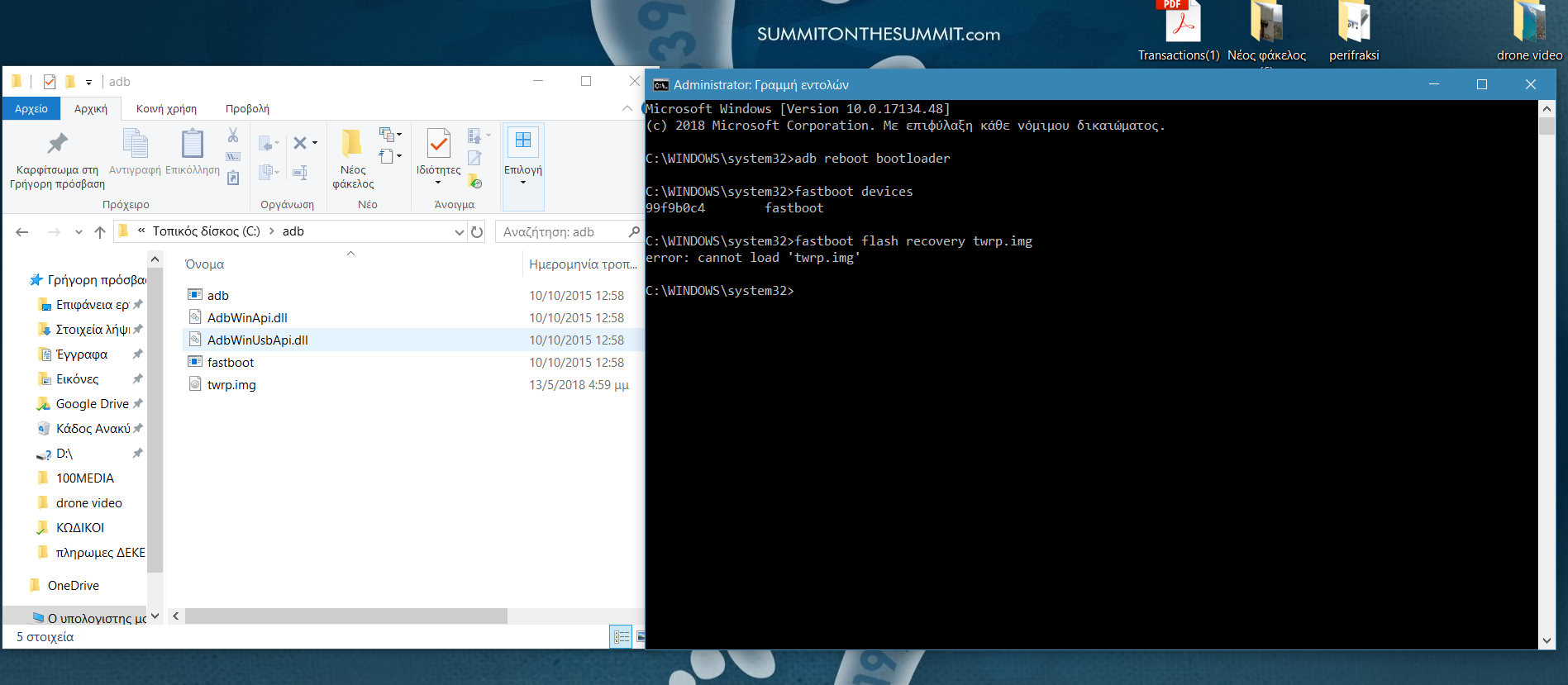cd\cd adbfastboot flash recovery twrp.img αν δεν δουλέψει αυτή θα δώσεις fastboot flash recovery twrp.img.img fastboot boot twrp.img ή twrp.img.img (ανάλογα ποιο σου δούλεψε)