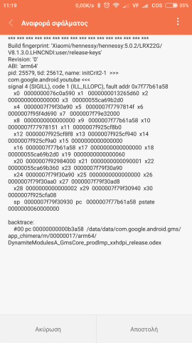Youtube crash (Δυστυχώς, η εφαρμογή YouTube έχει σταματήσει.)