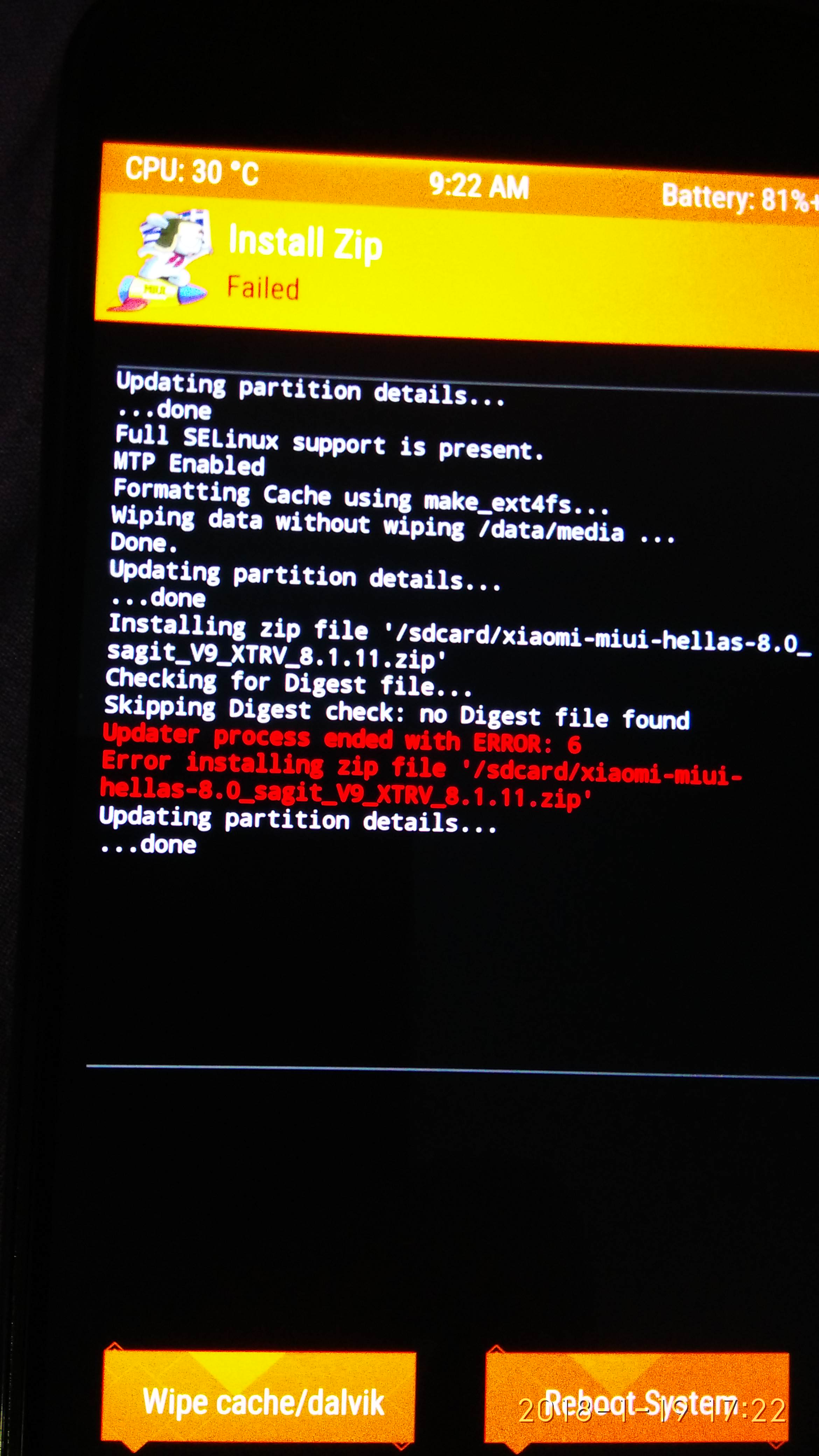 Πέρασα το twrp από τον bootloader κ στο install της ρομ μου βγάζει αυτό. Έκανα πριν την εγκατάσταση της ρομ factory reset (αν έχει σημασία;).Ο/H MIUI_ART έγραψε: