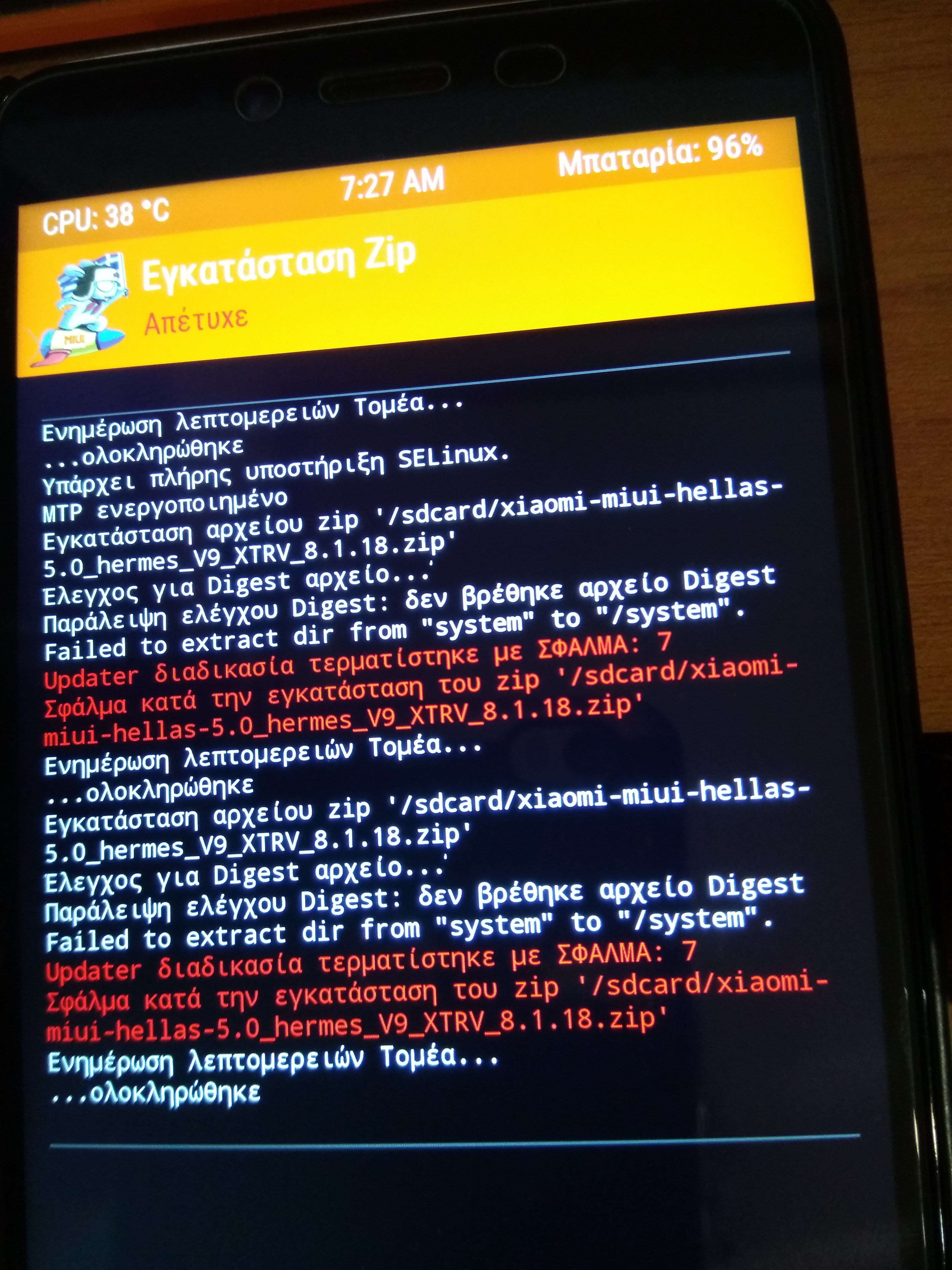 Επίσης κάθε φορά που πέφτεις σε error θέλει πάλι reboot σε recovery και ξανά τικαρισμα η ξετικαρισμα -