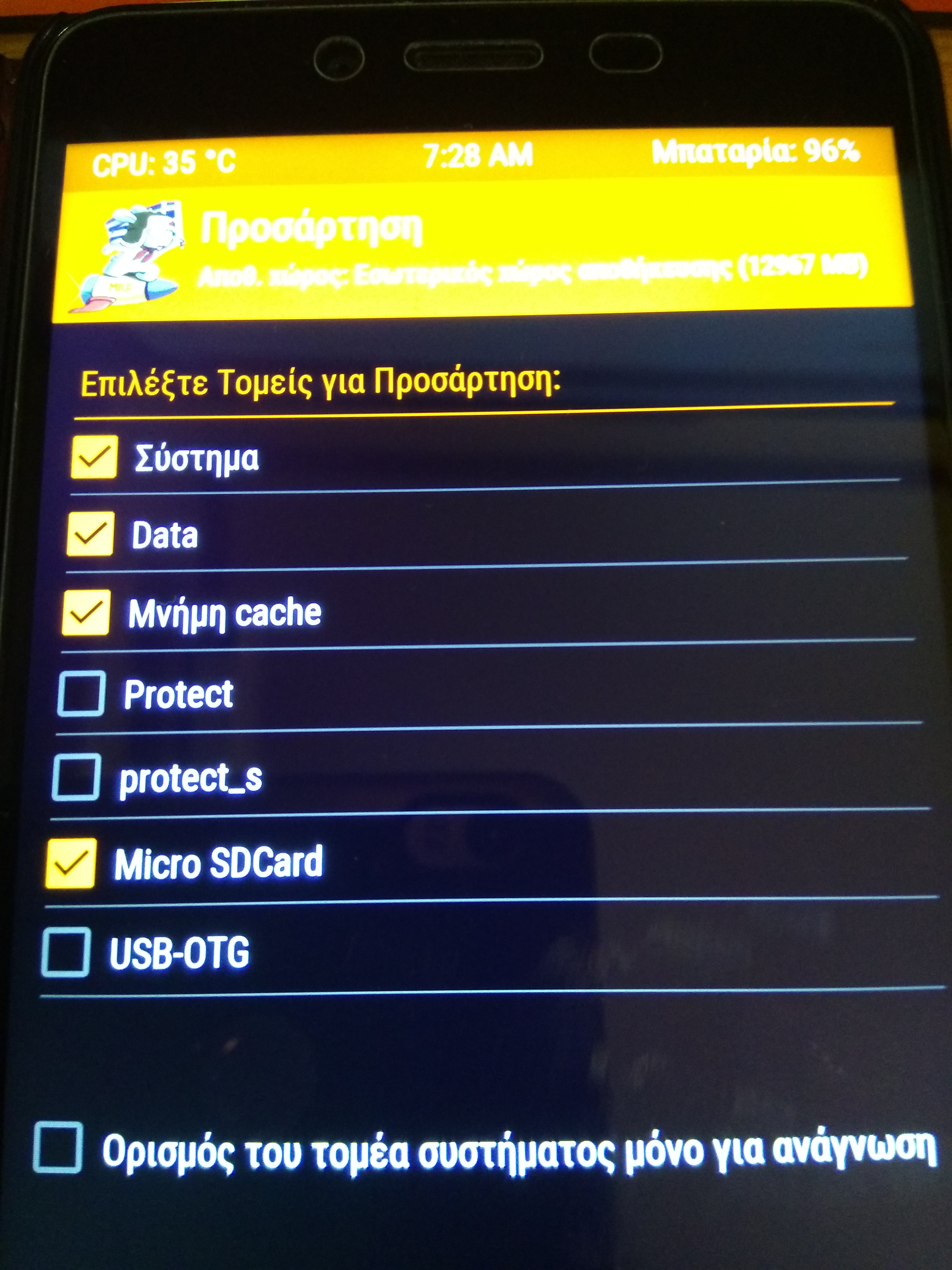 Δεν υπάρχει πρόβλημα στη Ρομ , κολλάει στο mi γιατί δεν έχει περαστεί το system , φυσιολογικό .. απλώς θέλει λίγο παιχνίδι στο mount , να δοκιμάσεις τικαρισμα και ξετικαρισμα γιατί είδα ότι δεν είναι τικαρισμενο στη συσκευή σου ..