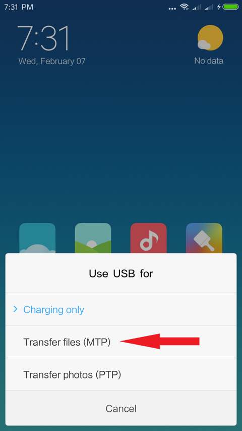Μετά συνδέστε το κινητό σας με το PC και επιλέξτε μεταφορά αρχείων ώστε να βάλετε το app με το Google installer