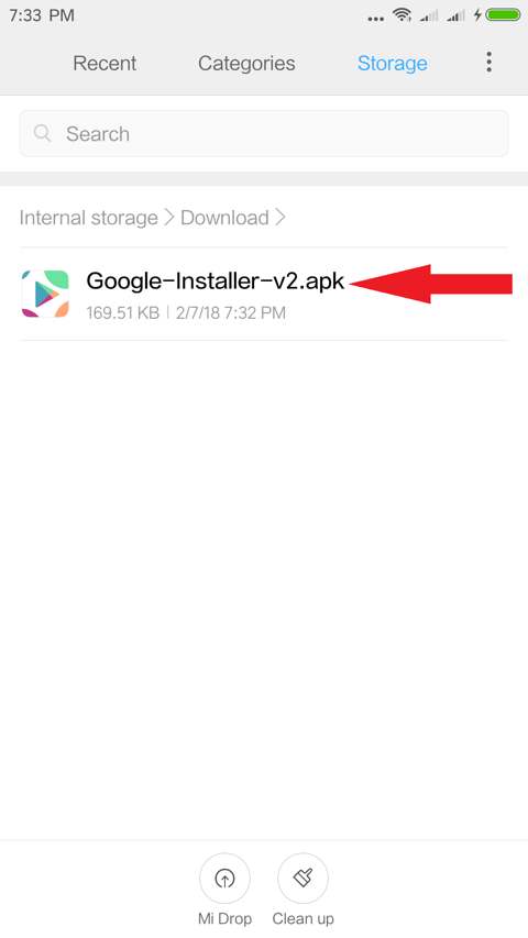 Αναζητήστε τον φάκελλο Mi File Manager,και βάλτε το app (αρχείο) Google installer στο φάκελο Download