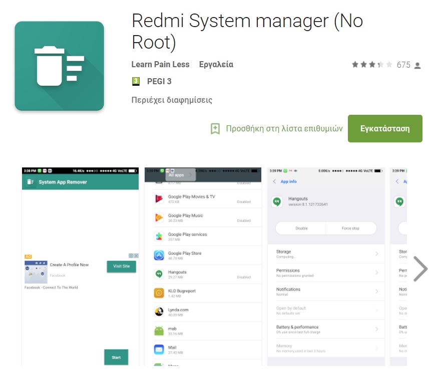 Στις 3 παραπάνω συσκευές απενεργοποίησα με μεγάλη ευκολία τα Google apps που δεν χρειάζομαι σε dt. Η εφαρμογή λέει ότι μπορεί να απενεργοποιήσει και System apps αλλά προσωπικά δεν δοκίμασα κάτι τέτοιο.