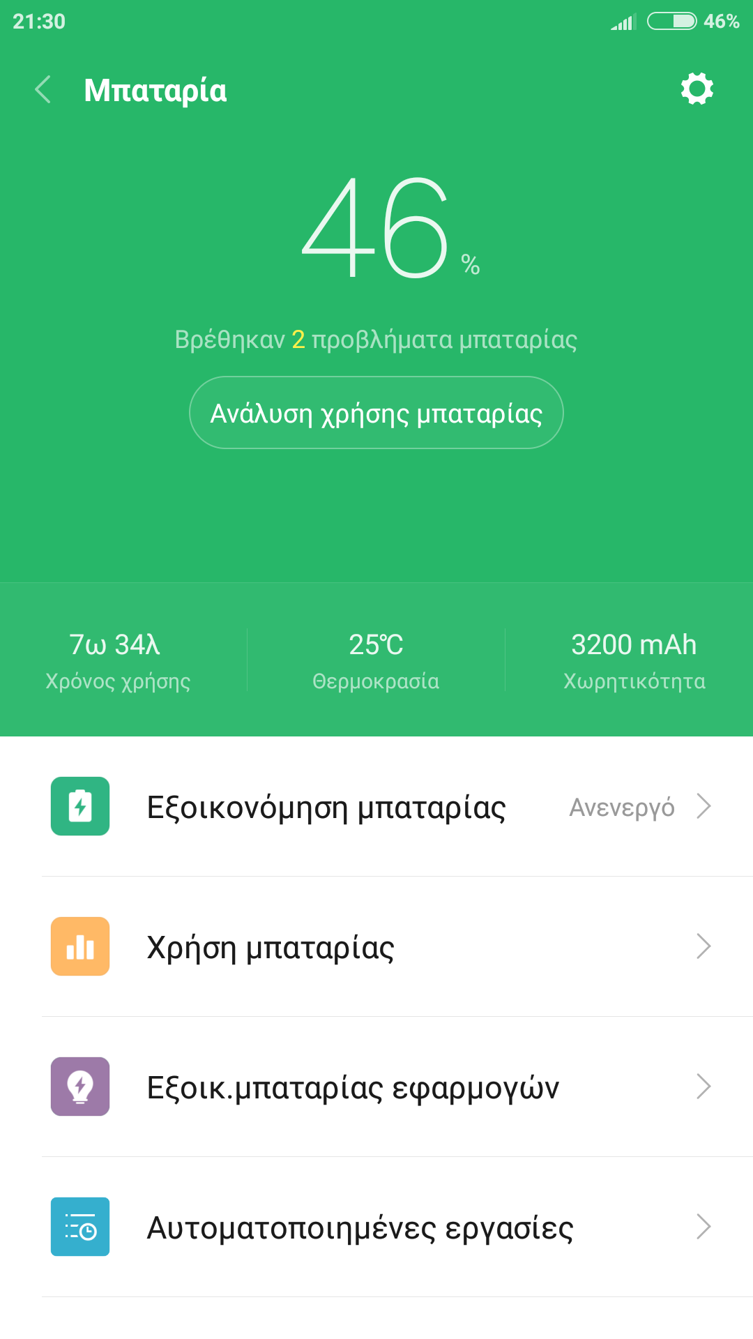 Ενεργοποιήστε την λειτουργια εξοικονομήσεις μπαταρίας πηγαίνοντας Ρυθμίσεις>Μπαταριά>Εξοικονόμηση μπαταρίας και αφήστε το Miui να κανει τα δικα του!