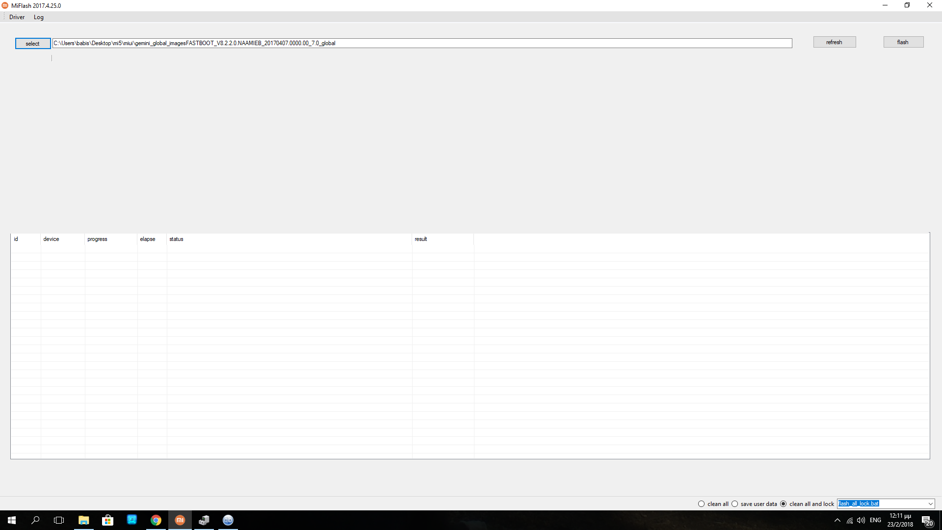 path εχω οπως παντα (παλαιοτερα το εκανα πολλες φορες) τον φακελο της fastboot rom και κατω εχω επιλεξει clean all and lock