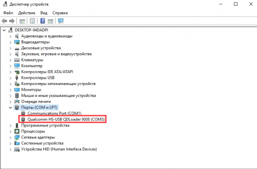 6.Θα ακούσουμε τον χαρακτηριστικό ήχο από τα windows ότι κάτι συνδέθηκε στον υπολογιστή, για να σιγουρευτουμε πάμε στην διαχείριση συσκευών στον πινάκα έλεγχου και βλέπουμε άμα δείχνει συνδεδεμένη συσκευή στα Ports (COM & LPT) την Qualcomm HS-USB QDLoader 9008. Αμα την εμφανίζει συνεχίζουμε αλλιώς δεν μπορούμε να συνεχίσουμε γιατί η συσκευή δεν αναγνωρίζετε όποτε κάτι δεν έχει γίνει σωστά.