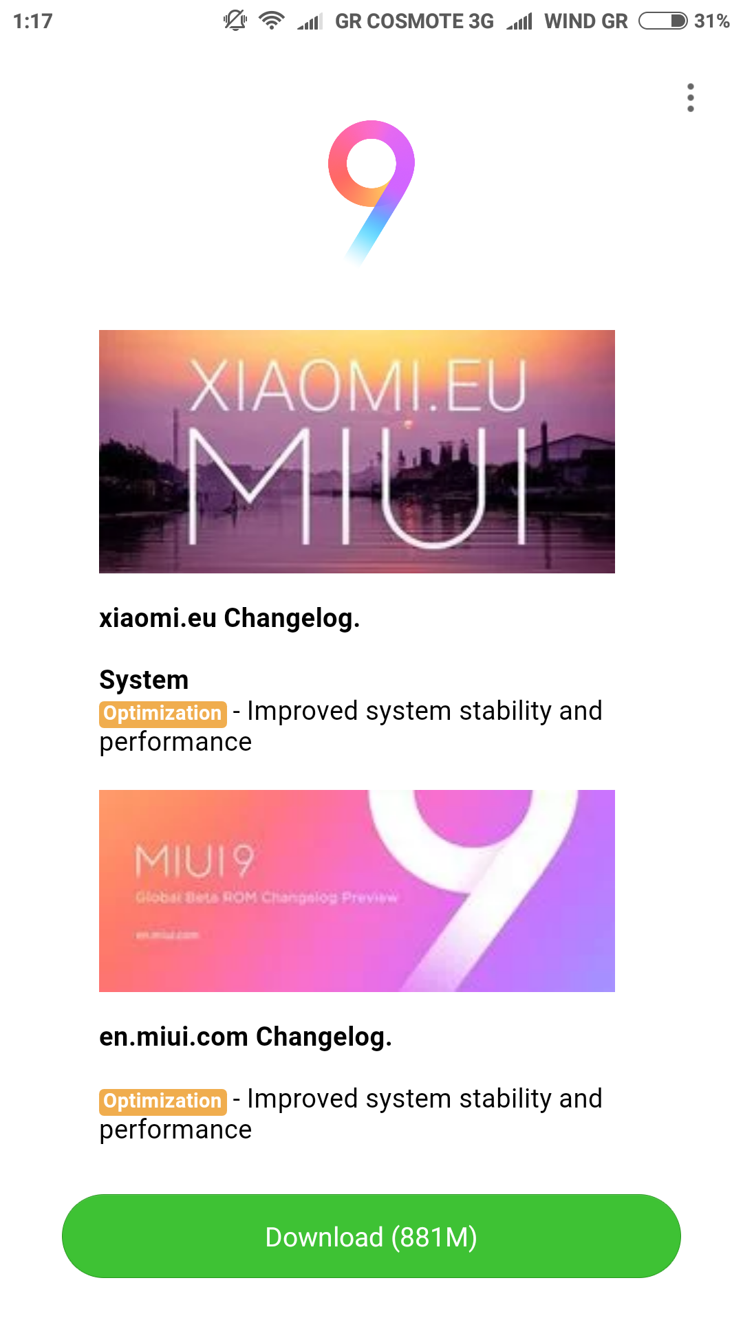 Ευχαριστώ πολύ ρε παιδιά!!! είπα ότι δεν θα τα κατάφερνα αλλά χάρη σ εσάς τι να πω!!! Κ σορυ για το Σαββατόβραδο αλλά κόλλησα.. τώρα όμως μου βγάζει συνέχεια ότι έχει νέα αναβάθμιση κ μου σπάει τα νεύρα..να του κάνω;;Xiaomi Redmi Note 2 από τον Μάρτιο του 2015