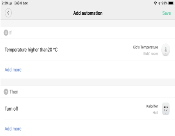 Αφού τελειώσουμε και με την εγκατάσταση, προσθέτουμε στα σενάρια στους sensors θερμοκρασίας που θέλουμε να γίνεται Power On ή off η πρίζα SmartPlug.