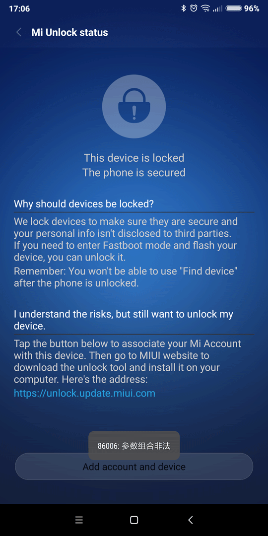 Δοκίμασα να τρέξω το MI Unlock status (όπως στην εικόνα 3.png) και με VPN εφαρογή (PlexVPN) και IP από Κίνα, αλλά πάλι πήρα τον κωδικό 86006..