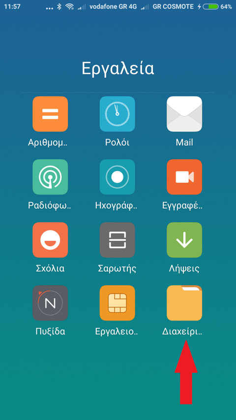 Στην συνέχεια πηγαίνετε στην επιφάνεια εργασίας του κινητού σας και αναζητήστε τον φάκελλο Διαχείριση