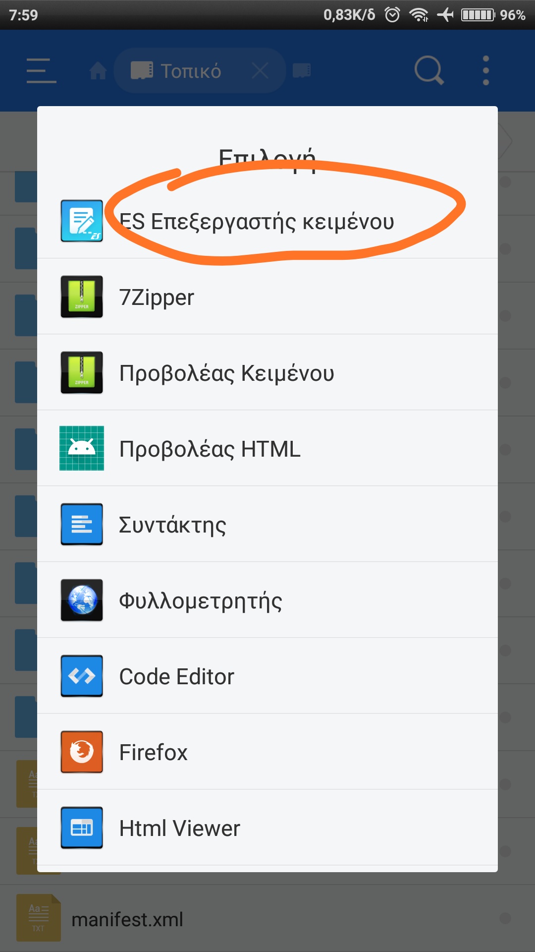 και μπαίνουμε με ES επεξεργαστής κειμένου