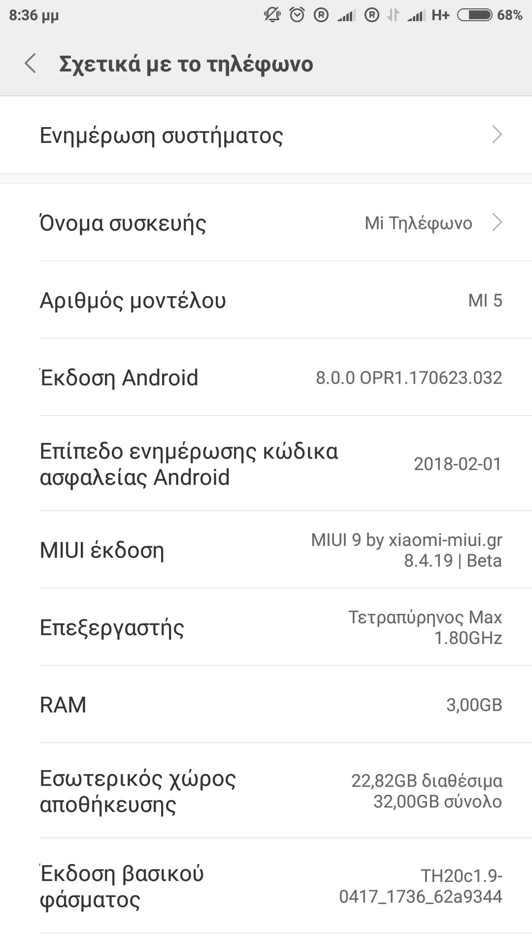 Ρυθμίσεις => Σχετικά με το τηλέφωνο και δες την Miui έκδοση... είναι η 8.4.19 ?Ο/H tasos17 έγραψε: