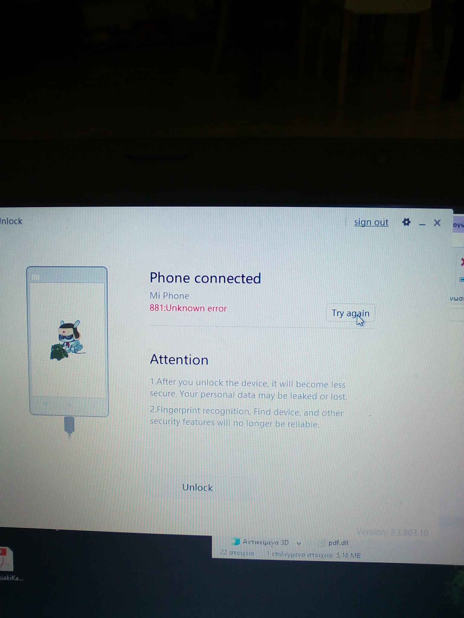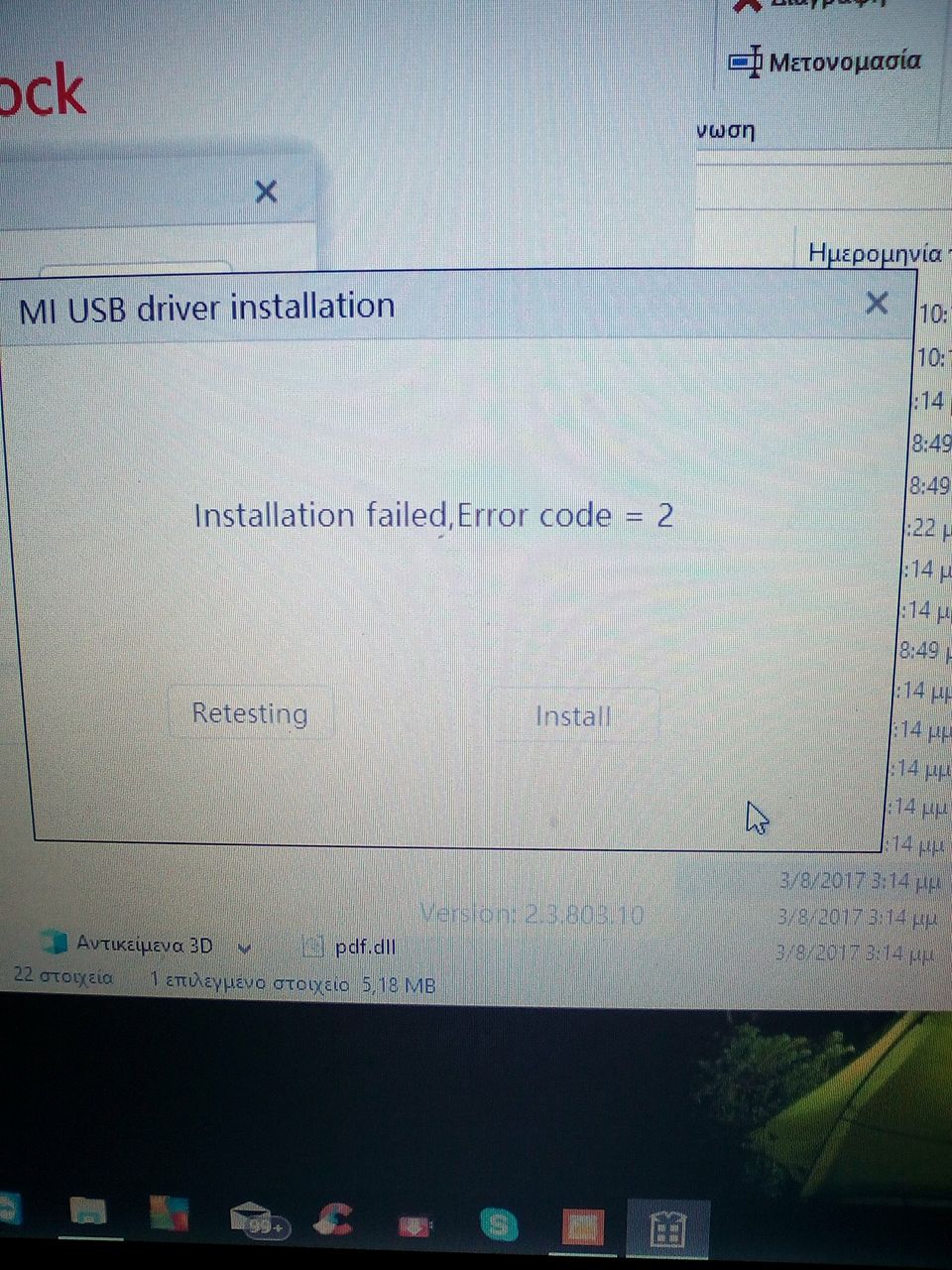 ΠΡΟΣΠΑΘΩΝΤΑΣ ΝΑ ΞΕΚΛΕΙΔΩΣΩ ΤΟΝ BOOTLOADER ΣΤΟ ΚΙΝΗΤΟ ΜΟΥ ΦΤΑΝΕΙ ΣΤΟ 50% ΚΑΙ ΚΑΝΟΝΤΑΣ CHECK USB DRIVERS MΟΥ ΒΓΑΖΕΙ ΤΟ ΜΥΝΗΜΑ "MI USB INSTALLATION FAILED ERROR CODE 2"