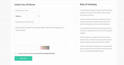 Εάν τώρα θέλετε να ξεκλειδώσετε τον bootloader , πηγαίνετε στο ξεκλείδωμα. ΔΙΑΔΙΚΑΣΙΑ ΞΕΚΛΕΙΔΩΜΑΤΟΣ ΤΟΥ BOOTLOADER Αίτηση για ξεκλείδωμα του bootloader. Αποκτήστε έγκριση από τον κατασκευαστή για ξεκλείδωμα. Εγκαταστήστε το τελευταίο (εβδομαδιαίο) υλικολογισμικό. Ξεκλειδώστε το bootloader. Η έγκριση μπορεί να διαρκέσει έως και 10 ημέρες, αλλά συνήθως γίνεται πιο γρήγορα. 1. ΕΦΑΡΜΟΓΗ ΓΙΑ ΕΓΚΡΙΣΗ Για να κάνετε αίτηση, θα πάτε στο επίσημο site της MIUI. Στο παράθυρο που ανοίγει, κάντε κλικ στην επιλογή "Ξεκλείδωμα τώρα"