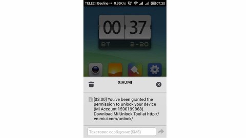 ΕΓΚΡΙΣΗ ΓΙΑ ΤΗΝ ΑΙΤΗΣΗ Τώρα μένει να περιμένετε το SMS από τον κατασκευαστή, στο οποίο θα γράφεται ότι έχετε λάβει τη συγκατάθεσή τους για να ξεκλειδώσετε τον bootloader. Το SMS θα μοιάζει με αυτό