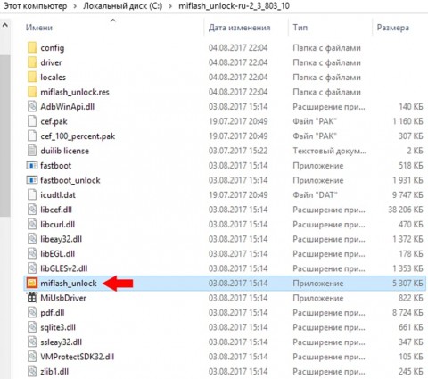 Αποσυμπίεση του αρχείου απευθείας στην μονάδας δίσκου C: / Εκτελέστε το πρόγραμμα χρησιμοποιώντας το αρχείο miflash_unlock.exe.