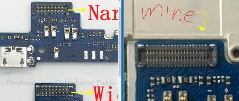 • 1. Το narrow και το wide απο λίγο που έψαξα μόλις παίζει να είναι διαφορετικό ανάλογα το revision της συσκευής. Οπότε για να δεις ποιό θες εσύ, πρέπει να δείς τη συσκευή σου. Οπότε άνοιξε τη συσκευή σου και προσεκτικά δες ποιό χρειάζεσαι. Σου βάζω εδώ τις δυο φωτογραφίες για να δεις συγκριτικά ποιό είναι ποιό. Οι διαφορές είναι σαν αυτό που λέμε "αρσενική υποδοχή ή θηλυκή υποδοχή".