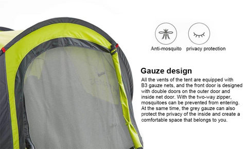 Η σκηνή είναι φυσικά κατασκευασμένη από ανθεκτικό αδιάβροχο υλικό που αντέχει σε υψηλές και πολύ χαμηλές θερμοκρασίες,