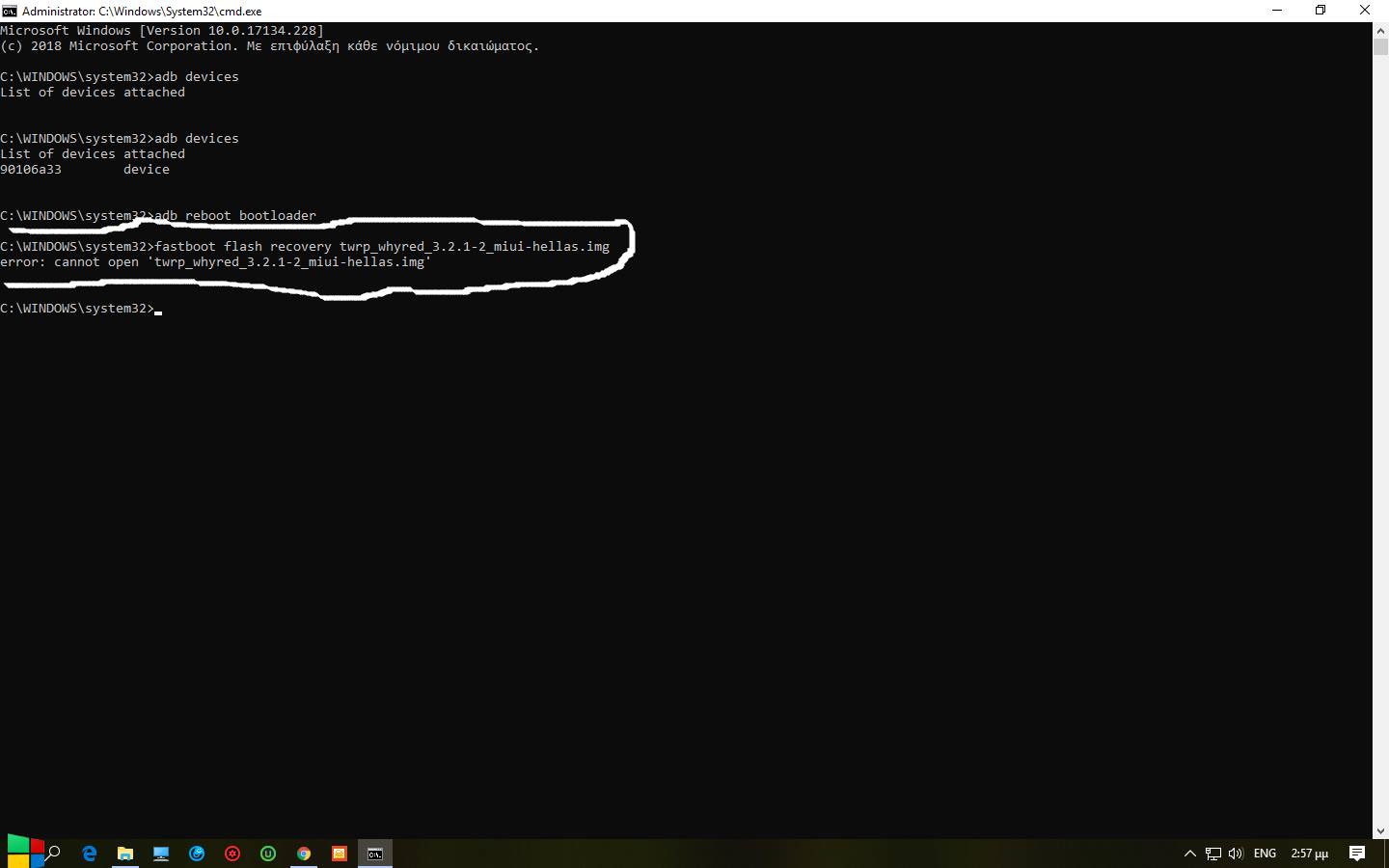 καλησπέρα..καταρχήν να ενημερώσω οτι το τηλέφωνο φοράει την MIUI Global 9.5/σταθερή 9.5.19.... κάνω εγκατάσταση το TWRP Recovery και φτάνω μέχρι το σημείο να περάσω το dummy.img...αλλά δεν (εικόνα 1)....παρακάμπτω αυτό το βήμα και πάω στο fastboot flash recovery twrp_whyred_3.2.1-2_miui-hellas.img..αλλά και πάλι τίποτα..(εικονα 2)..