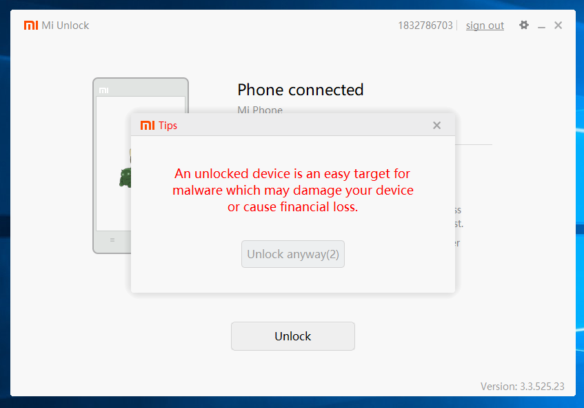 Πριν ολοκληρωθεί η διαδικασία του ξεκλειδώματος, το νέο Mi unlock tool για λόγους ασφαλείας,