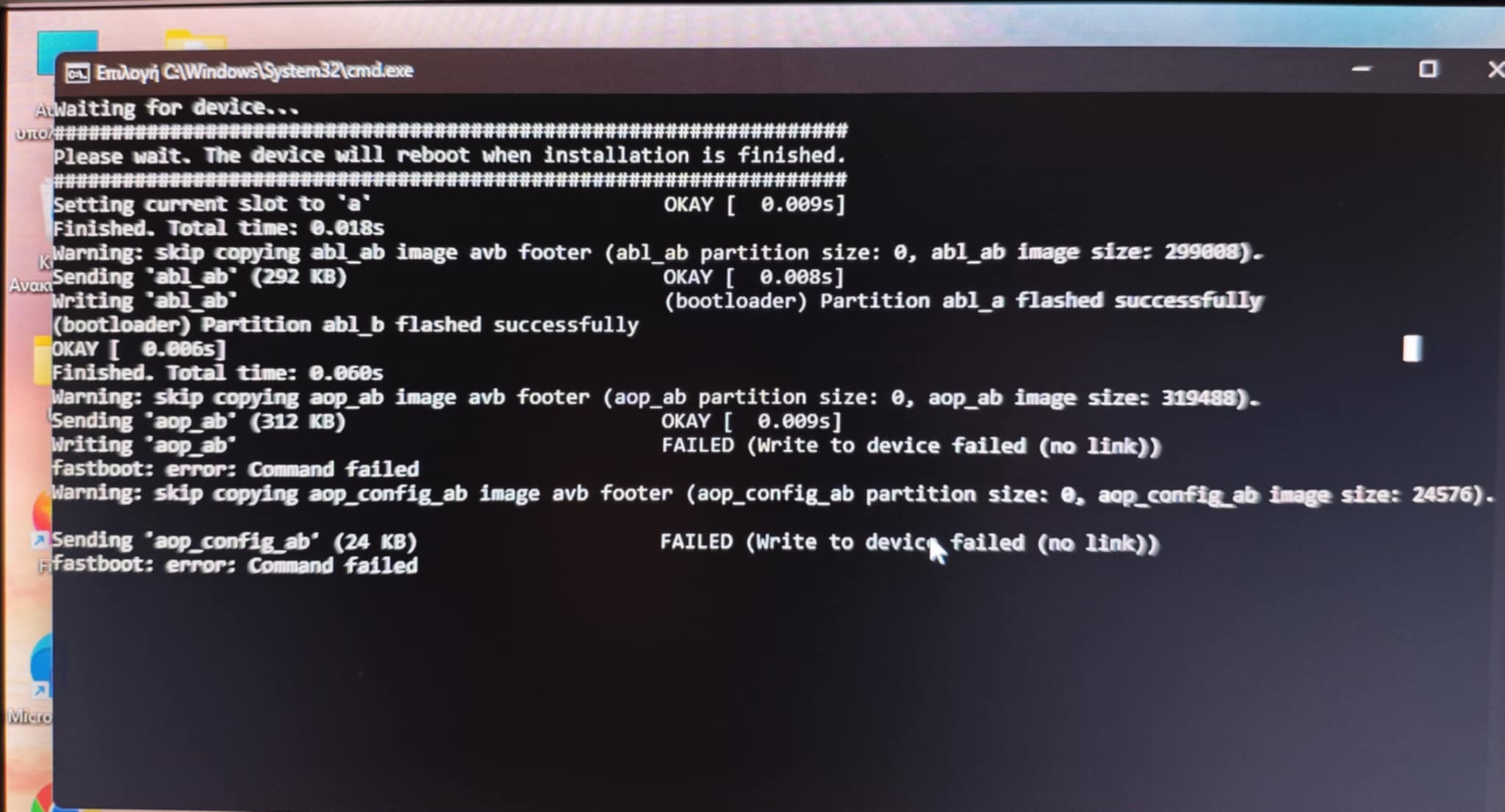 Περιστασιακά και σε εμένα έχει τύχει αρκετές φορές να αποσυνδέεται από το Fastboot και να μην ολοκληρώνονται τα Flash όλων των Partition και να χρειαστεί να δοκιμάσω αρκετές φορές μέχρι να γίνουν όλα όπως πρέπει.