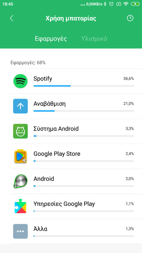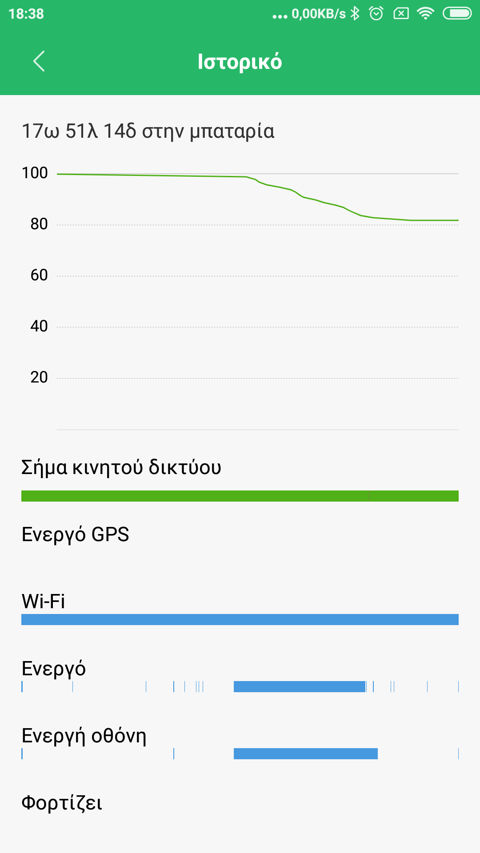To Πρωί μάλιστα είχα για 5 ώρες το Spotify να παίζει μουσική και να κατεβάζω ROM με τον Updater για να δοκιμάζω αν δουλεύει σωστά, με όλα ανοιχτά WiFi - Bluetooth και μετά από 17 ώρες από την τελευταία φόρτιση είμαι ακόμη στο 82%.