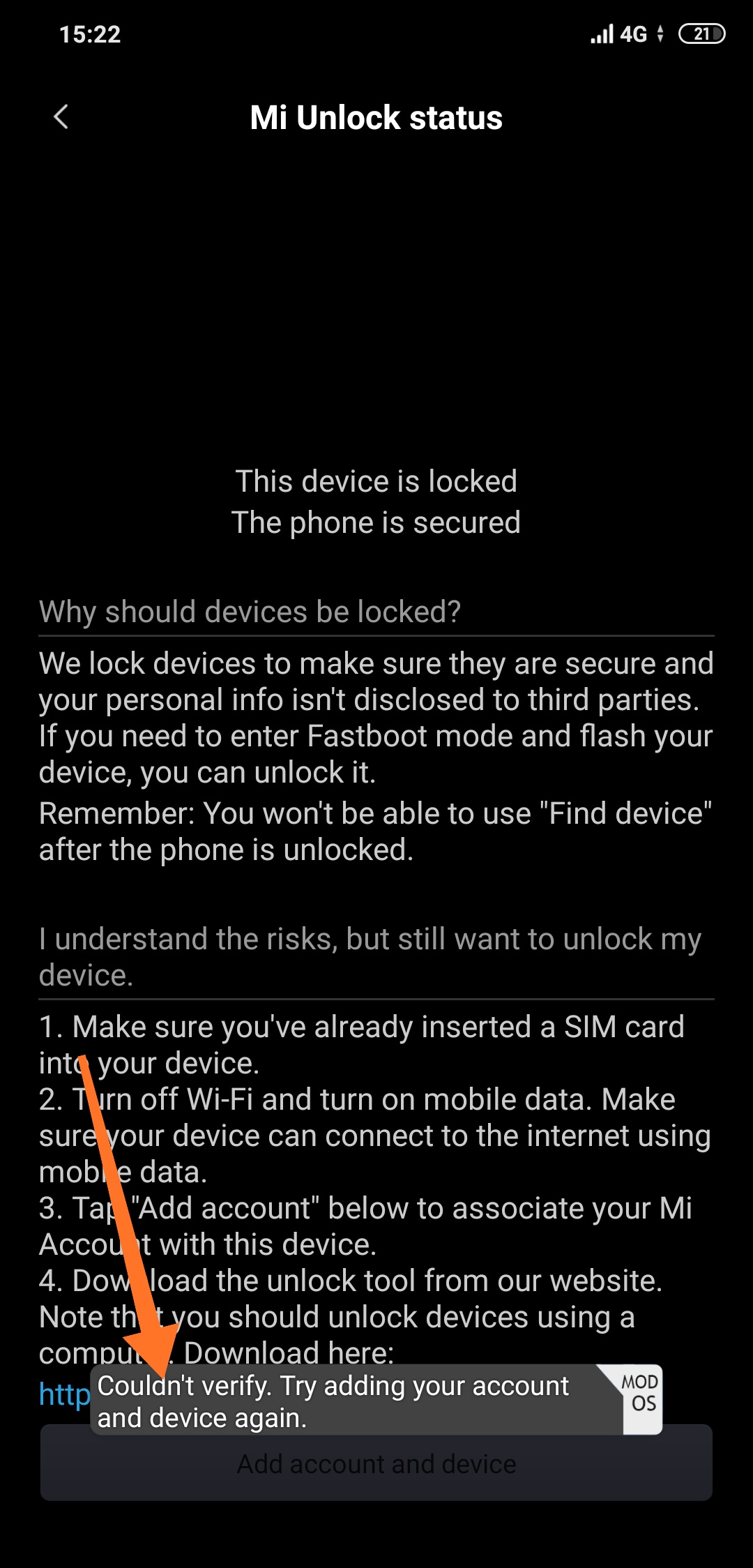 • Κάνω τα βήματα για ξεκλείδωμα bootloader καί μου βγάζει αυτό.