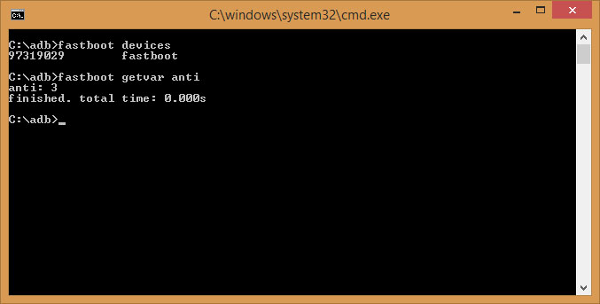 Έχοντας το κινητό σε fastboot mode και συνδεδεμένο στο PC, ανοίγουμε τη γραμμή εντολών και τρέχουμε τις εντολές: