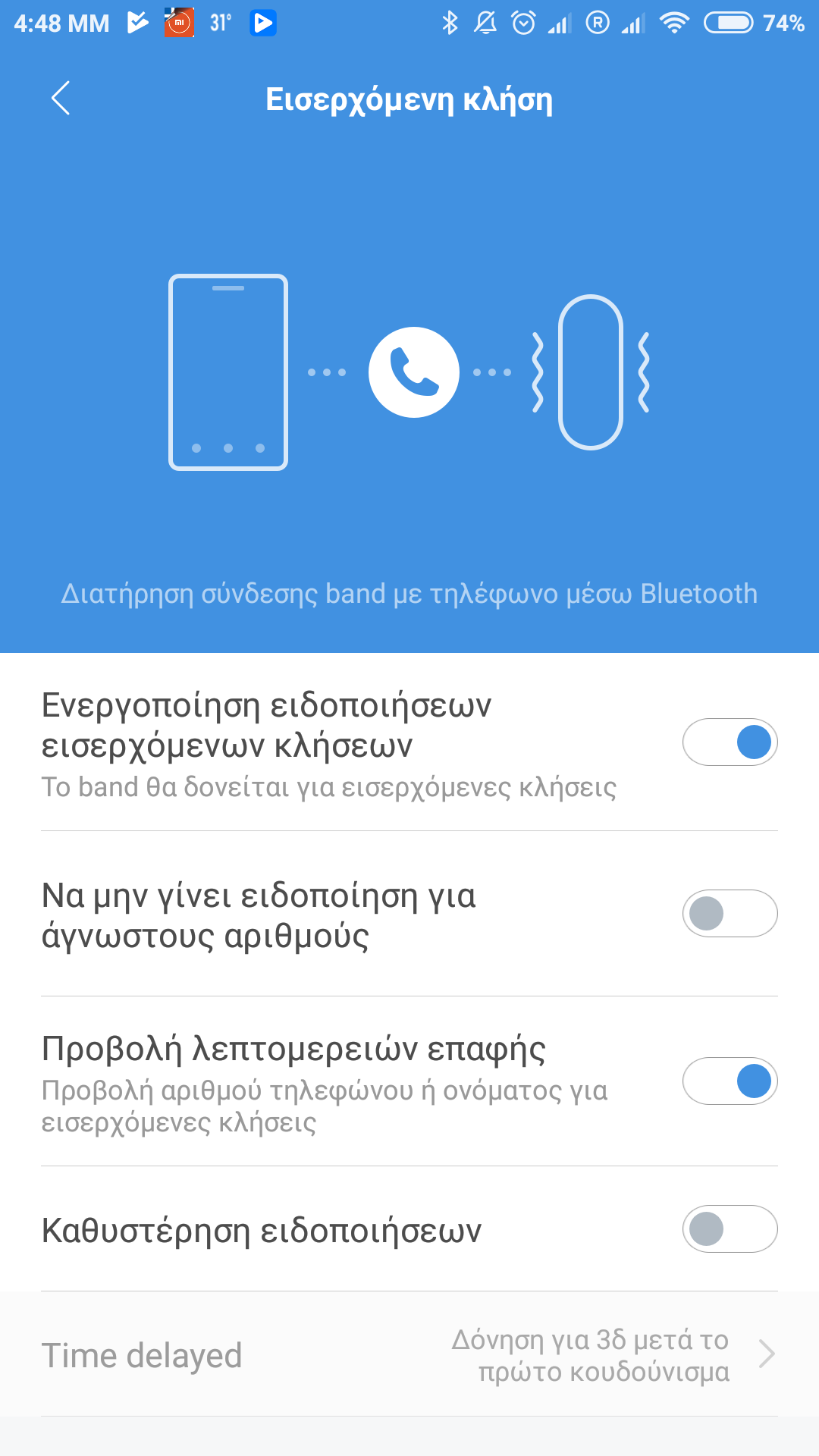 Mi Fit->Προφίλ->Mi band 3->Εισερχόμενη κλήση ??? -