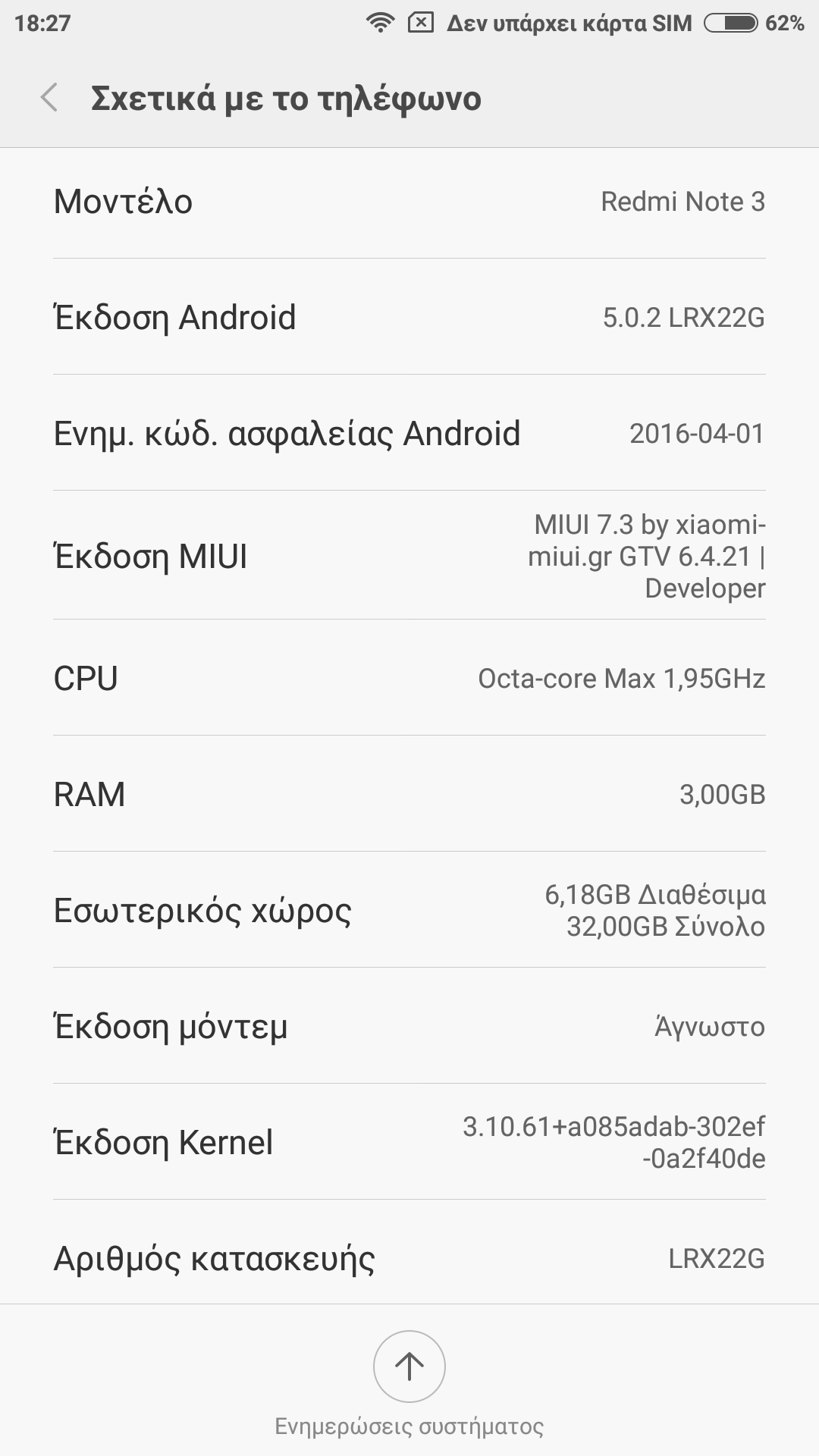 Γεια σας παιδιά έχω ένα Redmi note 3 απο τον Φεβρουάριο του 2015 στο οποίο με το που το πήρα έβαλα Developer Rom (φαίνεται στο screenshot ποιά) απο το φόρουμ ακολουθώντας όλα τα βήματα (ξεκλείδωσα το κινητό, εγκατέστησα τα αντίστοιχα προγράμματα που ζητούσε ο οδηγός κτλ...) και από τότε όλα λειτουργούσαν σωστά και δεν είχα αντιμετωπίσει ποτέ κανένα μα κανένα πρόβλημα. Πρόσφατα όμως μετά από μια μέρα που ξέχασα να το βάλω να φορτίσει άρχισε τα δικά του, δλδ μου έσβησε τα ΙΜΕΙ και σταμάτησε να μου αναγνωρίζει τις κάρτες SIM. Το πήγα σε κατάστημα κινητών και μετά από δύο μέρες που το είχαν μου είπαν ότι δεν μπορούν να κάνουν τπτ καθώς δε δέχεται τις ROM που προσπαθούσαν να εγκαταστήσουν.Μπορώ να κάνω κτ ή παει χαμένο..?