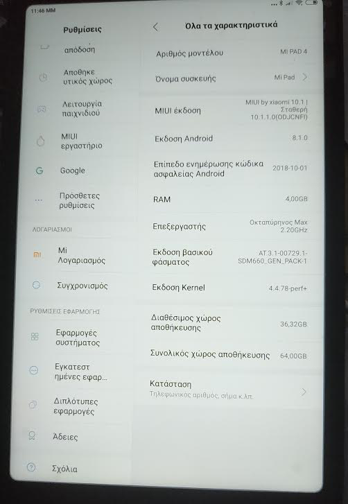 Το mi pad 4, έχει μόνο Κινέζικη ρομ (Αγγλικά-Κινέζικα) αλλά εσύ έχεις και ελληνικά μενού που απλά δεν παίζει