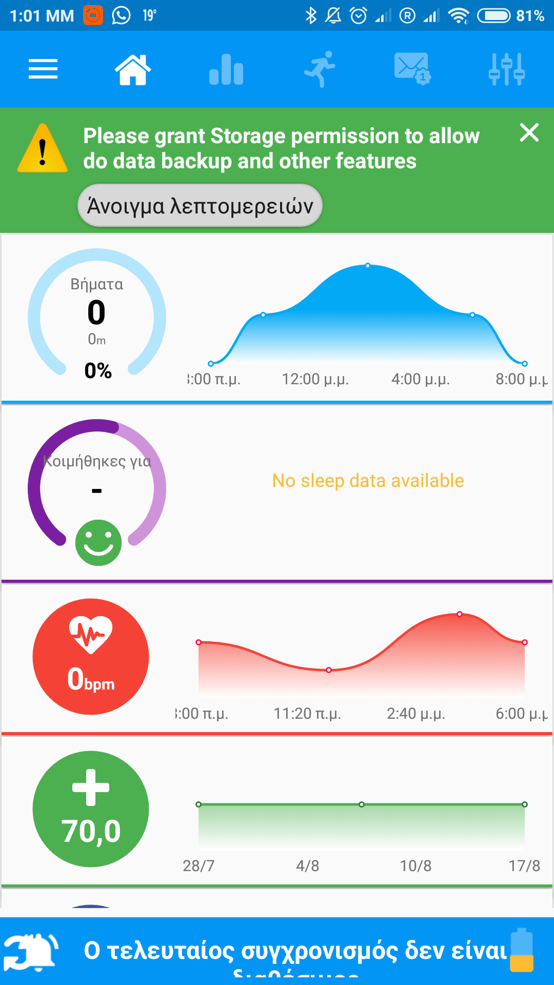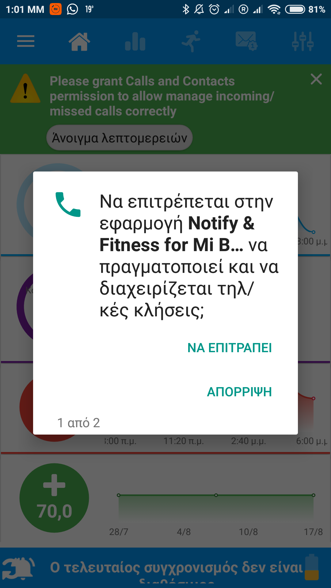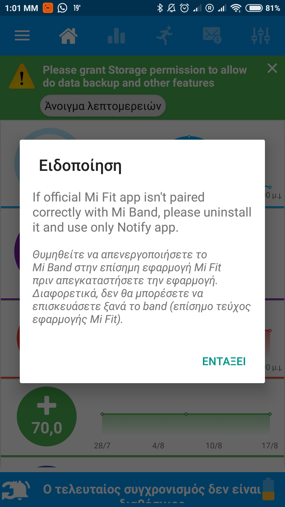 2) Μόλις κατέβει ανοίγουμε την εφαρμογή και δίνουμε πρόσβαση σε ότι μας ζητήσει για να είμαστε σίγουροι ότι θα υπάρχει σωστή επικοινωνία της εφαρμογής με το Mi Band!! Όπως βλέπετε από τις παρακάτω φωτογραφίες είναι αρκετά τα σημεία που πρέπει να δώσουμε πρόσβαση και να αποδεχτούμε. Όταν τελειώσουμε με όλα δεν πρέπει να βλέπουμε καμία ειδοποίηση στο πάνω μέρος της εφαρμογής.