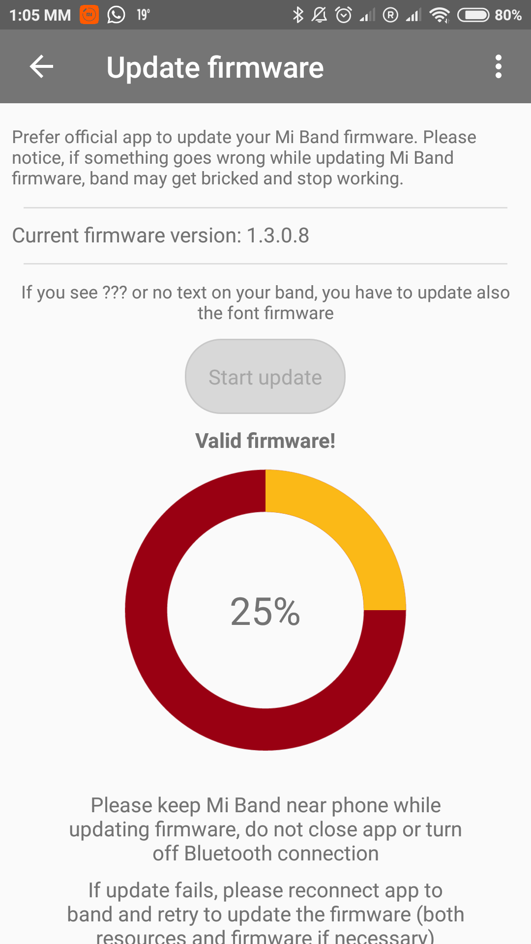 9) Το Update θα αρχίσει όπως βλέπετε και στις παρακάτω φωτογραφίες. Υπομονή για να ολοκληρωθεί και να περαστεί με επιτυχία. Κρατήστε όσο πιο κοντά μπορείτε το κινητό στο Mi Band, μην κλείσετε την εφαρμογή ή το Bluetooth και γενικά μη κόψετε τη διαδικασία για κανένα λόγο.