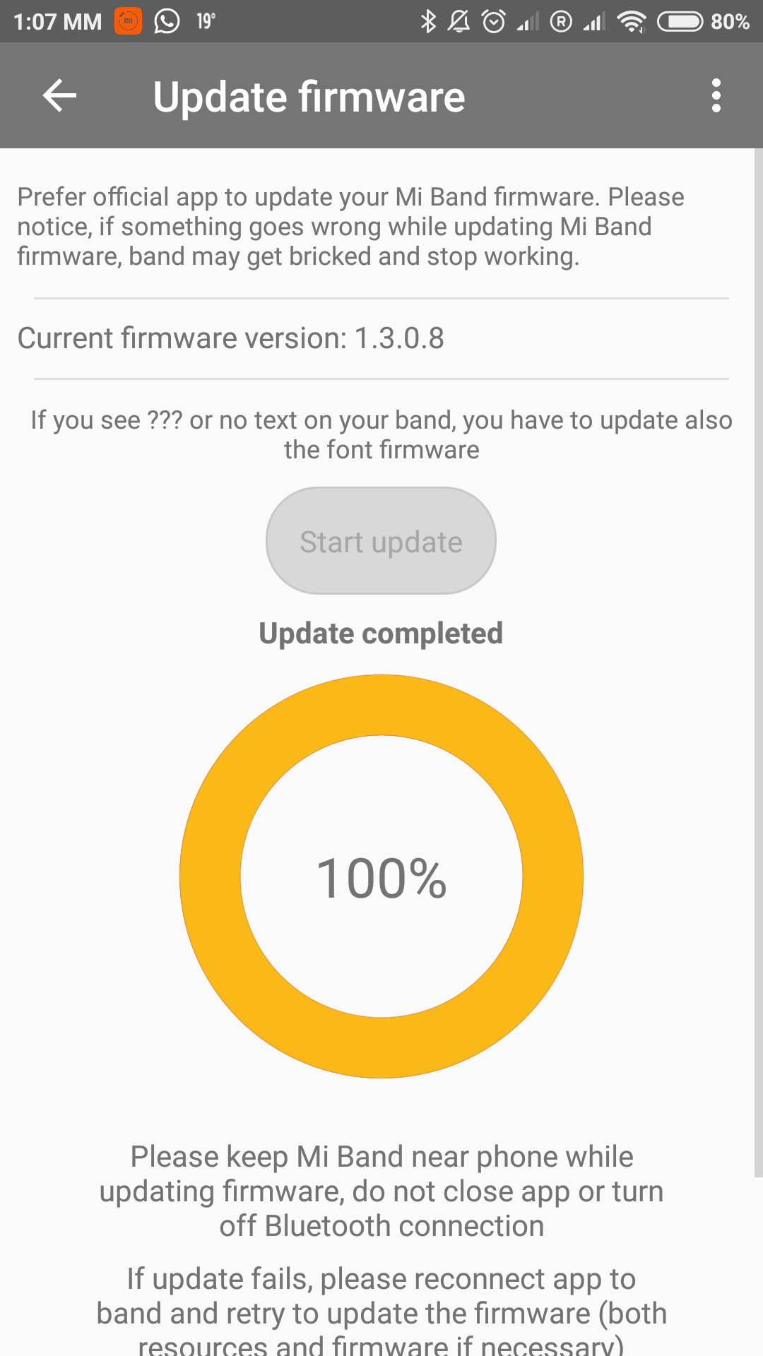 9) Το Update θα αρχίσει όπως βλέπετε και στις παρακάτω φωτογραφίες. Υπομονή για να ολοκληρωθεί και να περαστεί με επιτυχία. Κρατήστε όσο πιο κοντά μπορείτε το κινητό στο Mi Band, μην κλείσετε την εφαρμογή ή το Bluetooth και γενικά μη κόψετε τη διαδικασία για κανένα λόγο.