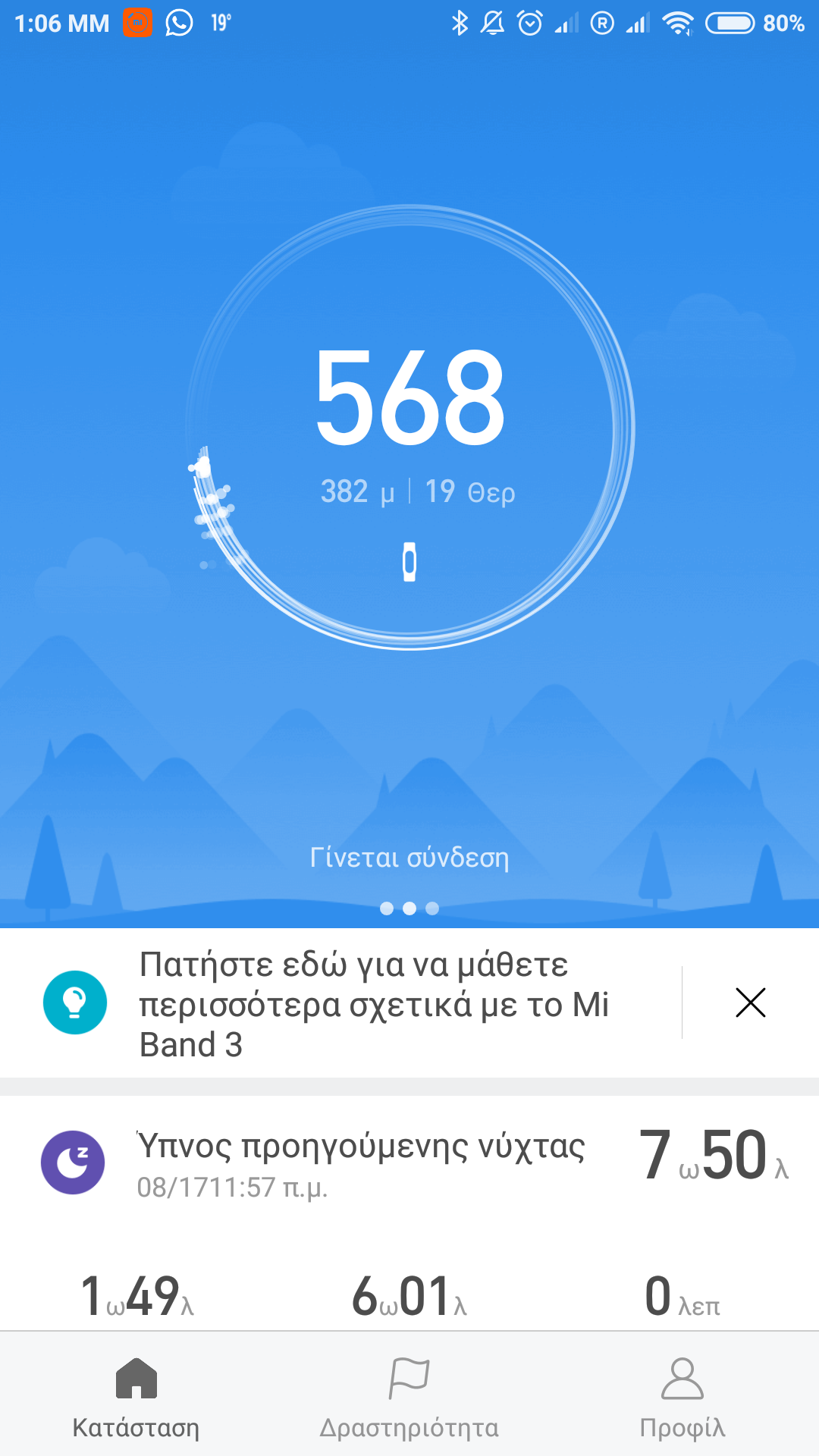 10) Με το που ολοκληρωθεί το Update θα ανοίξει αυτόματα το Mi Fit και θα κάνει προσπάθεια να συνδεθεί με το Mi Band. Σε εμένα πήρε 2-3 λεπτά για να γίνει η σύνδεση.