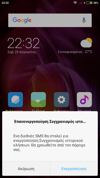 Υποπτεύομαι ότι έχει να κάνει με την κάρτα SIM για την οποία μου εμφανίζεται μήνυμα ότι δεν είναι ενεργοποιημένη αλλά όταν πατάω να σταλεί SMS ενεργοποίησης δε γίνεται τίποτα.
