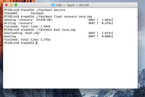 8. Καταχωρίστε την εντολη fastboot boot twrp.img και το τηλέφωνο θα εκκινήσει σε TWRP