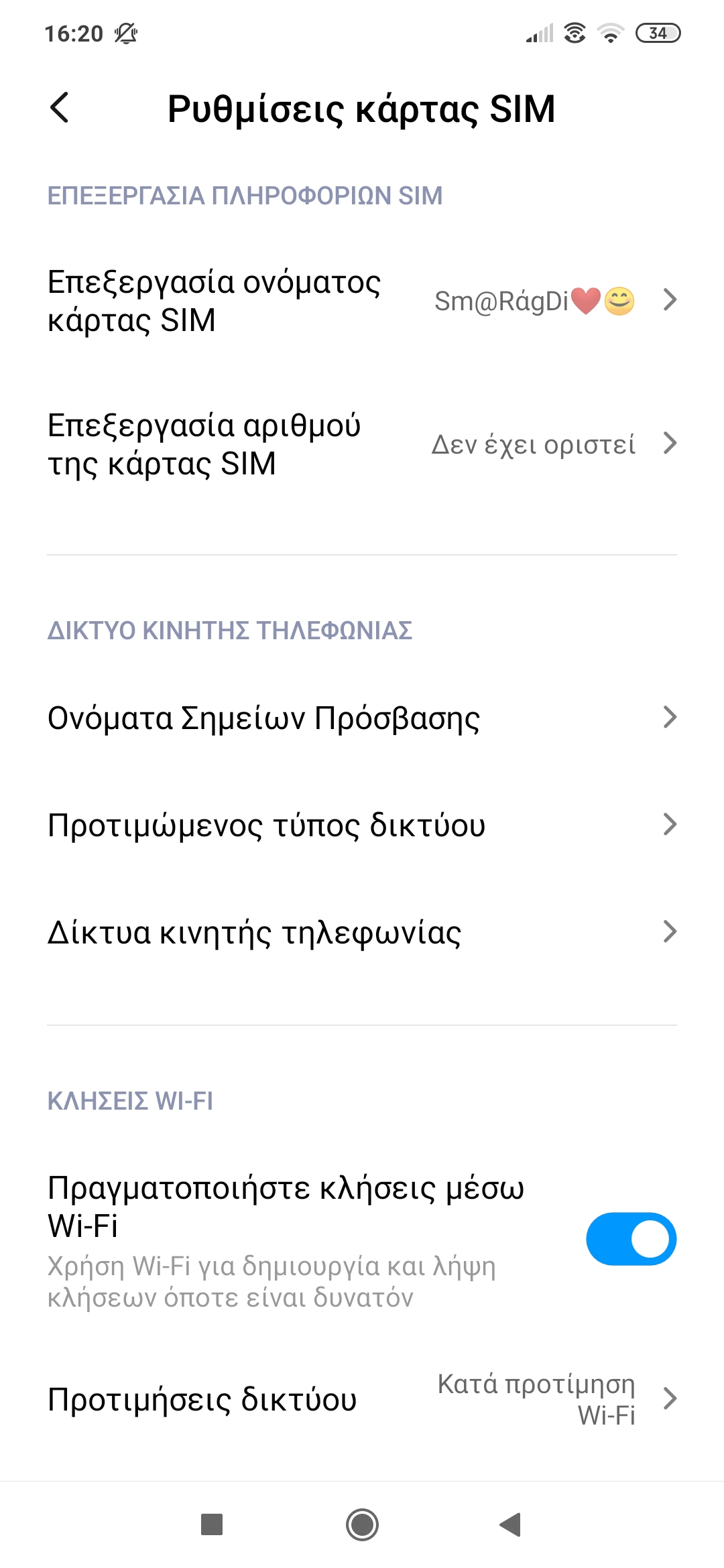 Συγγνώμη αλλά θέλω την βοήθειά σου...ενώ έχω το Redmi note 8 και εγώ και ο άντρας μου με ακριβώς το ίδιο λογισμικό μου, εμφανίζει μόνο στη δικιά μου συσκευή την δυνατότητα ενεργοποιήσεις του wifi calling. Την ενεργοποίησα λοιπόν μέσω του παρόχου Cosmote και όλα καλά... πώς γίνεται να εμφανισθεί η επιλογή και στο σύζυγο; Έχουμε ακριβώς το ίδιο λειτουργικό...Ο/H amavroudis έγραψε: