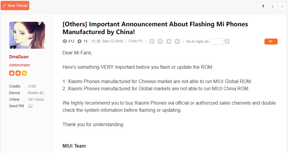 Πριν από λίγο διαβάσαμε μία νέα λιτή ανακοίνωση που έγινε από την Administrator στο επίσημο Global φόρουμ της Xiaomi, το γνωστό en.miui.com.