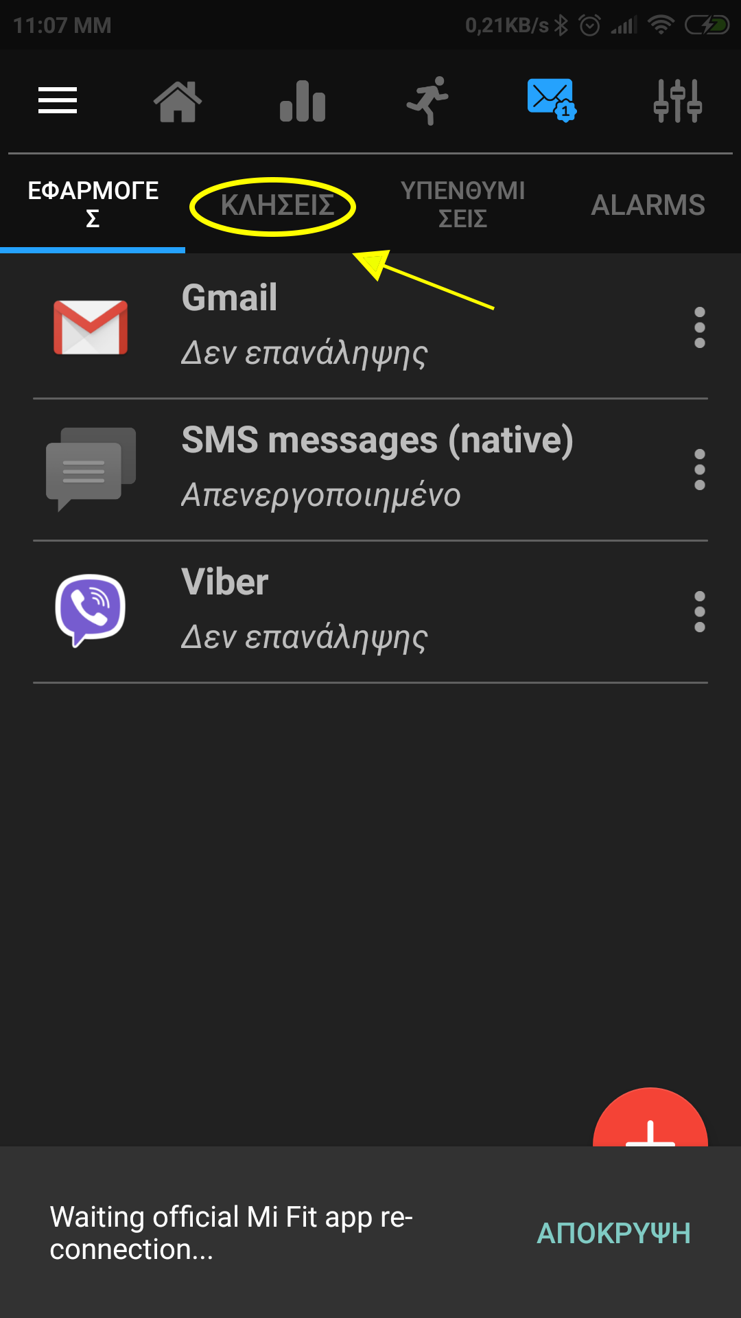 Δοκίμασα και από το mi fit για εισερχόμενες αλλά δεν κατάφερα κάτι.....