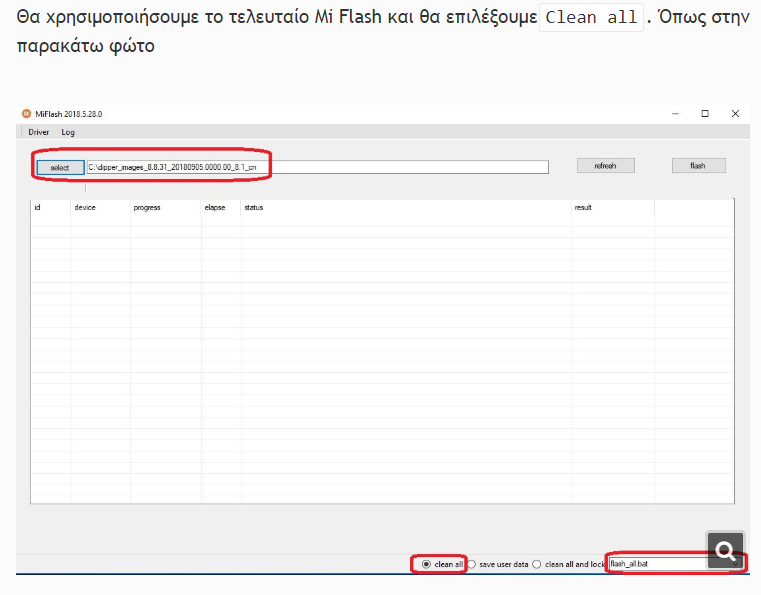 Ανέβασε ένα screenshot από το πρόβλημα. Να φαίνεται το miflash και μια το παράθυρο με τις διαδρομές που έχεις τη rom.