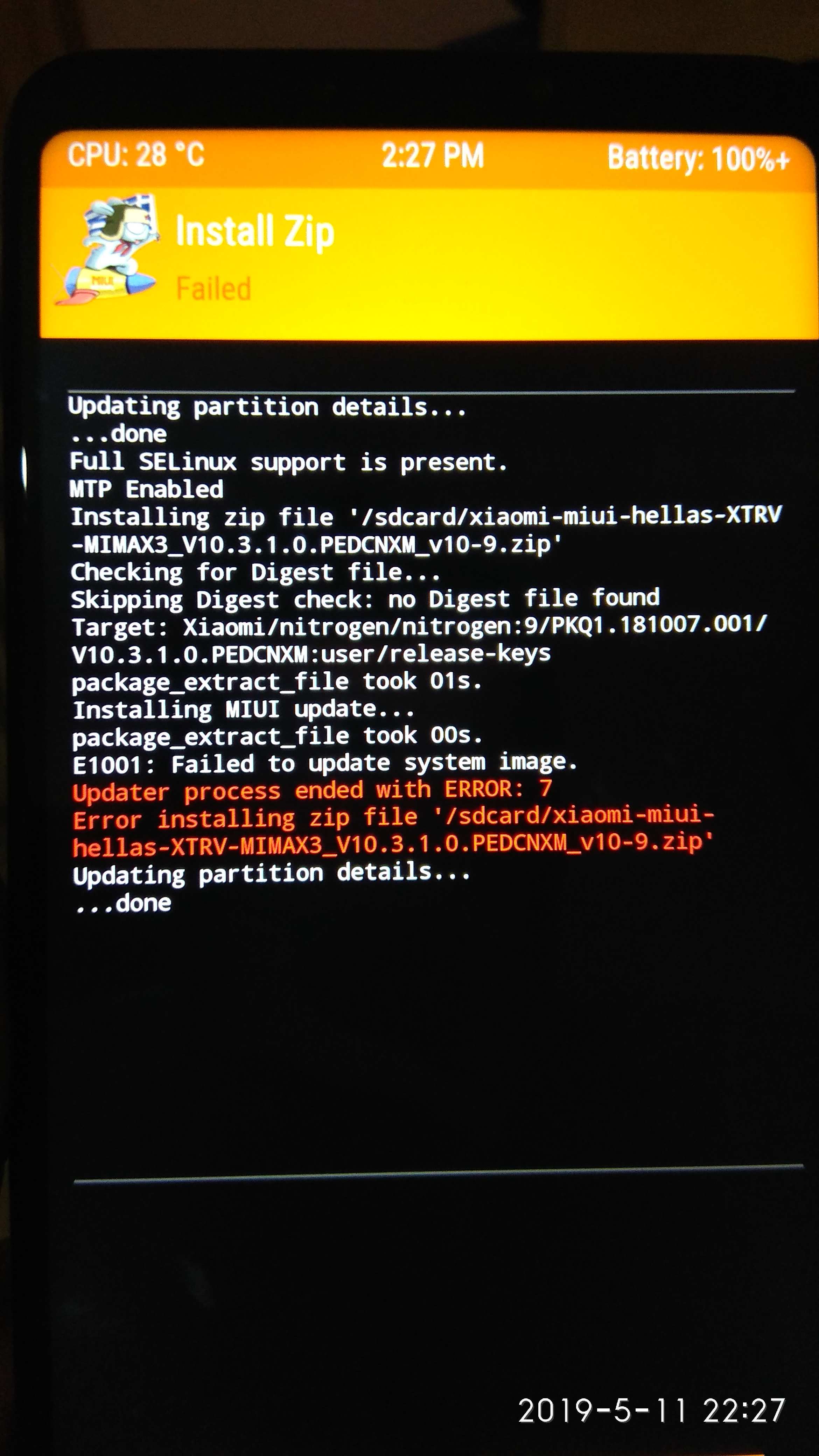 mi max 3.με το twrp 3.2.3.1 εχω ερορ 7 σε εγκατασταση της τελευταιας stable.Κανω εγκατασταση το 3.2.3_02-04 tools γινεται οκ η εγκατασταση αλλα δεν μπαινει σε twrp.