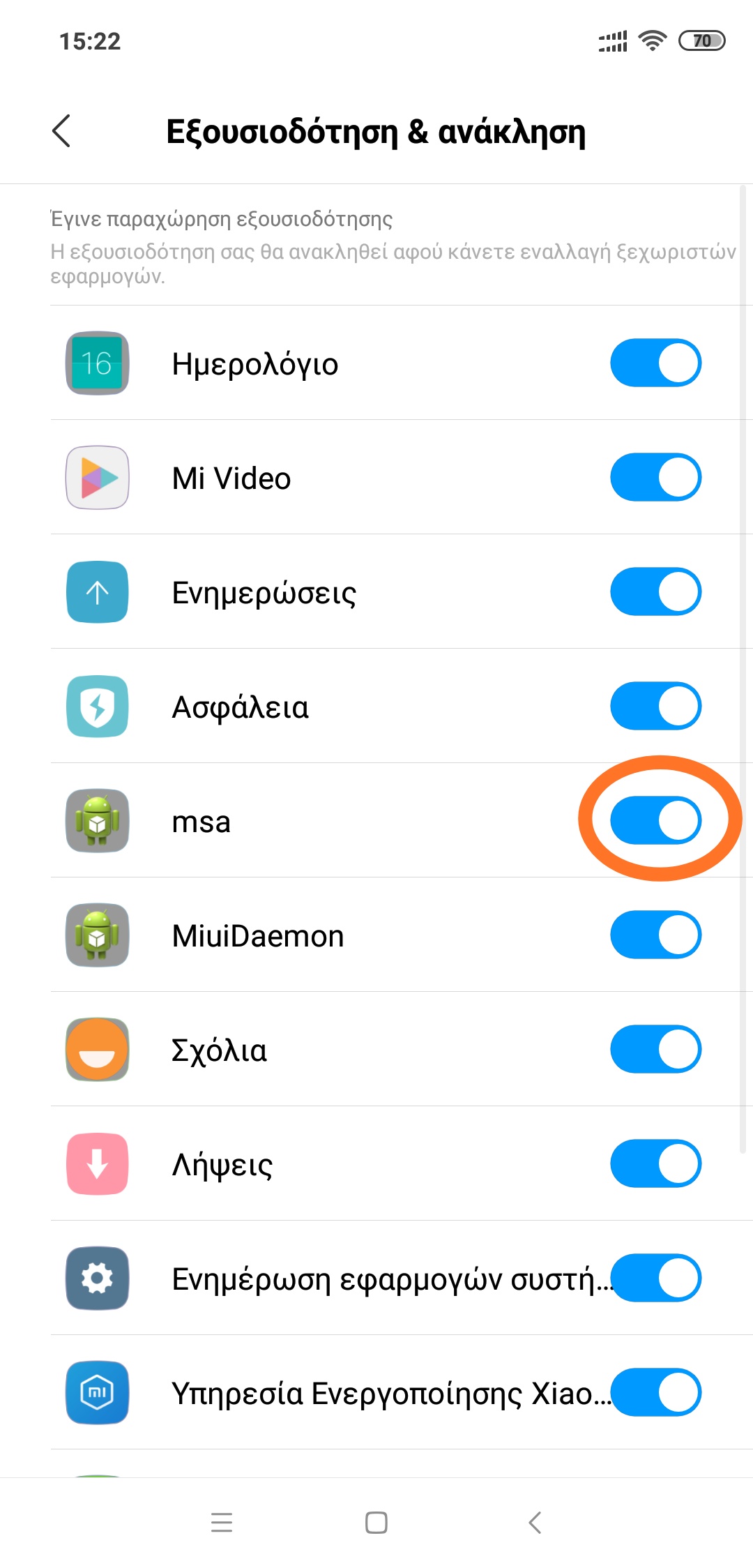 4ο βήμα επιλέγουμε να απενεργοποιήσουμε το msa (MIUI System Ads)