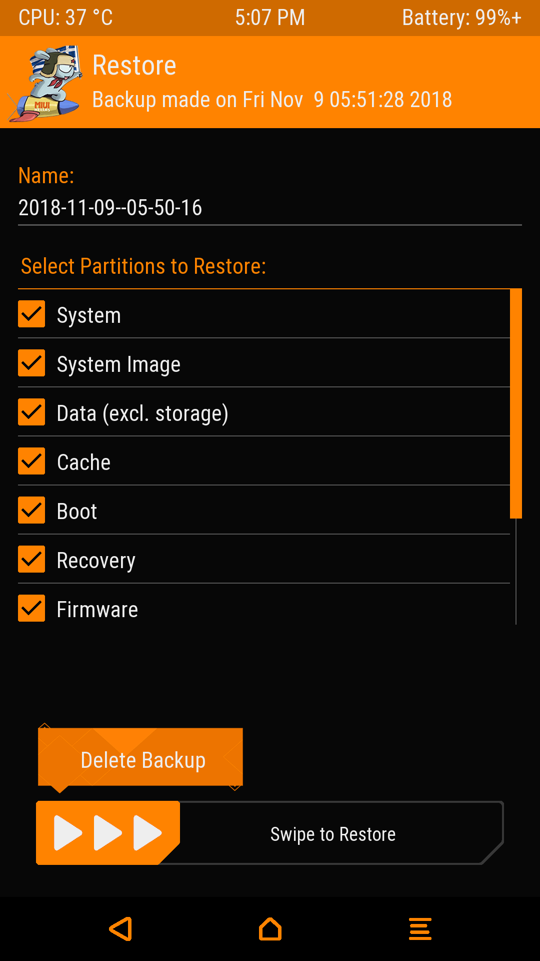 Όλα καλά, αλλά αποφάσισα οτι δεν την παλεύω να ξαναστήνω την home screen,οπότε είπα να φλασάρω το Backup.