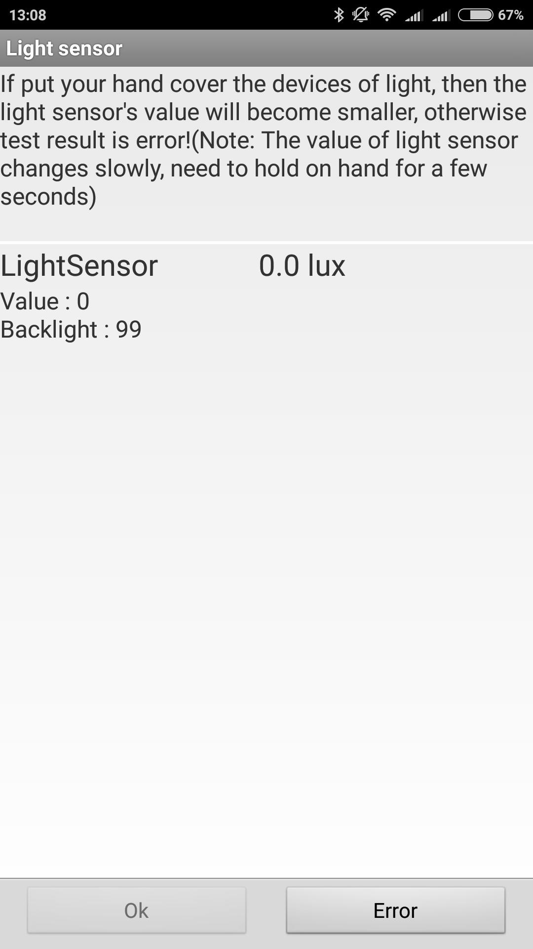 Πήγαινε ρυθμίσεις σχετικά με το τηλέφωνο πάτησε 5-6 στο kernel και κάνε τεστ τον Light sensor άναψε έναν αναπτήρα και πήγαινε τον κοντά στον αισθητήρα δίπλα από την μπροστινή κάμερα να δεις αν αυξάνει το lux