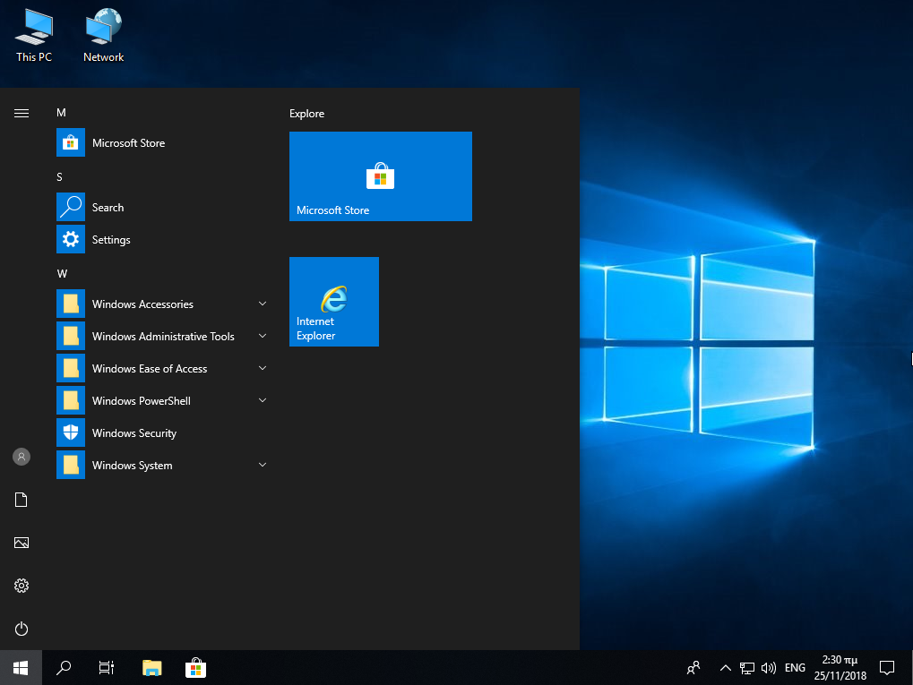 Επειδή έχει αφαιρεθεί και το Microsoft Edge, αν δεν έχετε τοπικά στο δίσκο σας τον browser της επιλογής σας έτοιμο για εγκατάσταση, κάντε αναζήτηση αριστερά κάτω στο "search" τη λέξη Internet Explorer για να εμφανιστεί, έτσι ώστε να ανοίξετε τον Internet Explorer και να κάνετε λήψη ότι χρειάζεστε.